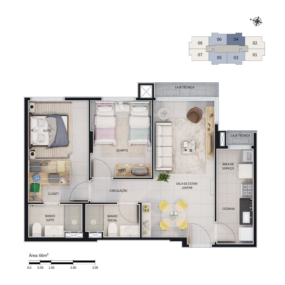 Também oferecemos playground infantil, pet place, garagem coberta e salão de festas elegante. Viva em um ambiente sofisticado que atende a todas as suas necessidades.